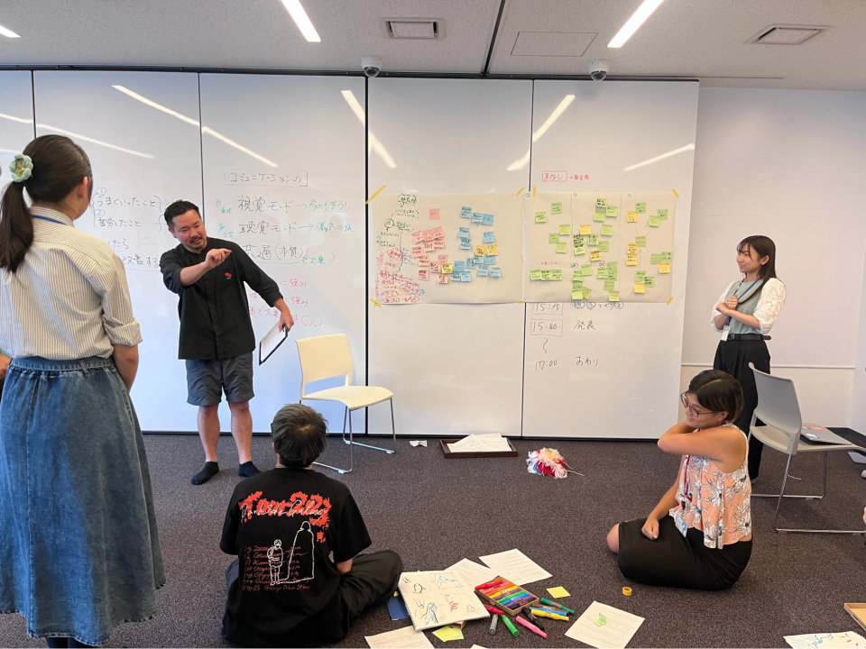 〜社内外コミュニケーションを円滑にするスキルを学ぶ〜という副題で、奥野美里さんと一緒に、すぐに実践できるファシリテーションと可視化のワークショップを実施