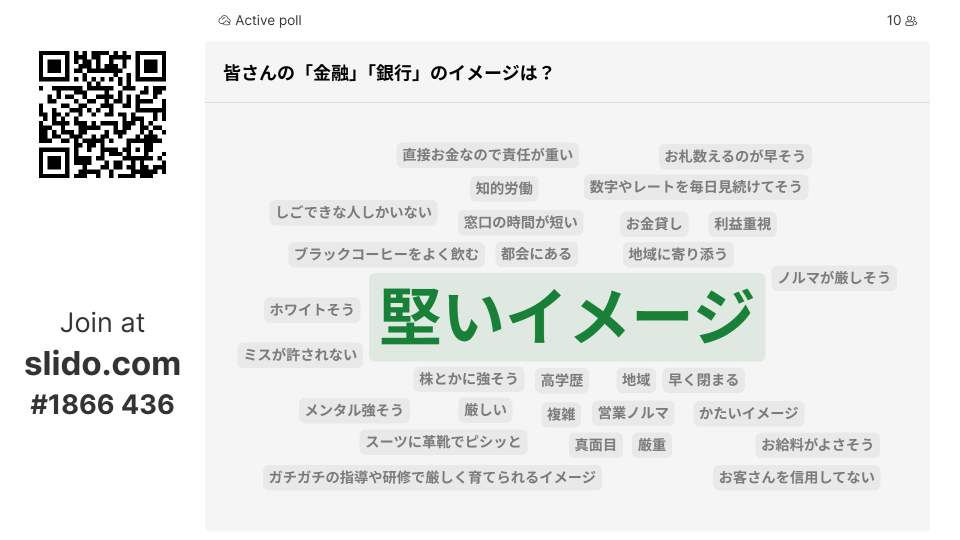 訪問前、学生たちは「金融=固い」という既成概念、例えば「利益重視」「スーツでビシッと」「営業ノルマ」といったイメージを持っていました。しかし、訪問を通じてその認識が大きく変わる様子が見て取れました。