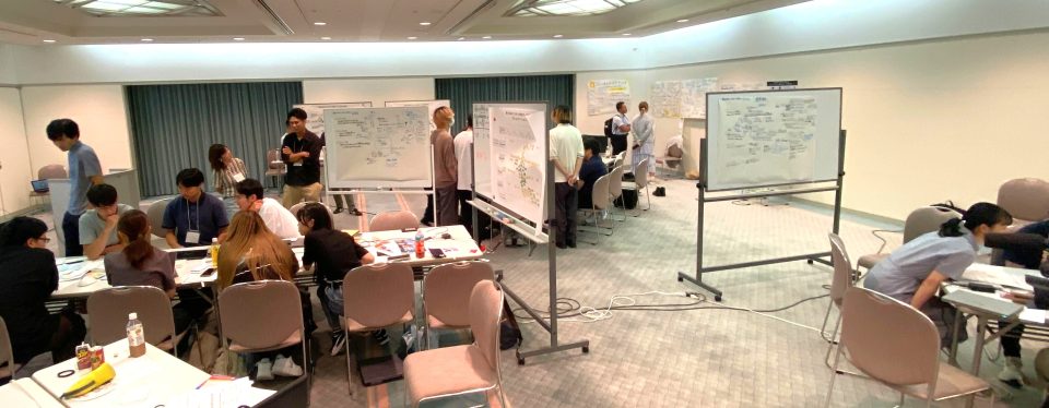 けいはんな学研都市で行われているけいはんな万博2025最終日の発表に向けて、大学生が話し合ってきたいくつかのテーマについて、未来に向けたアクションを決めて行くプロセスを可視化