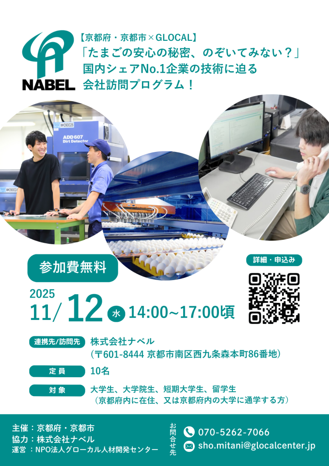 🌟募集中【京都府・京都市×GLOCAL】「たまごの安心の秘密、のぞいてみない?」国内シェアNo.1企業の技術に迫る会社訪問プログラム!